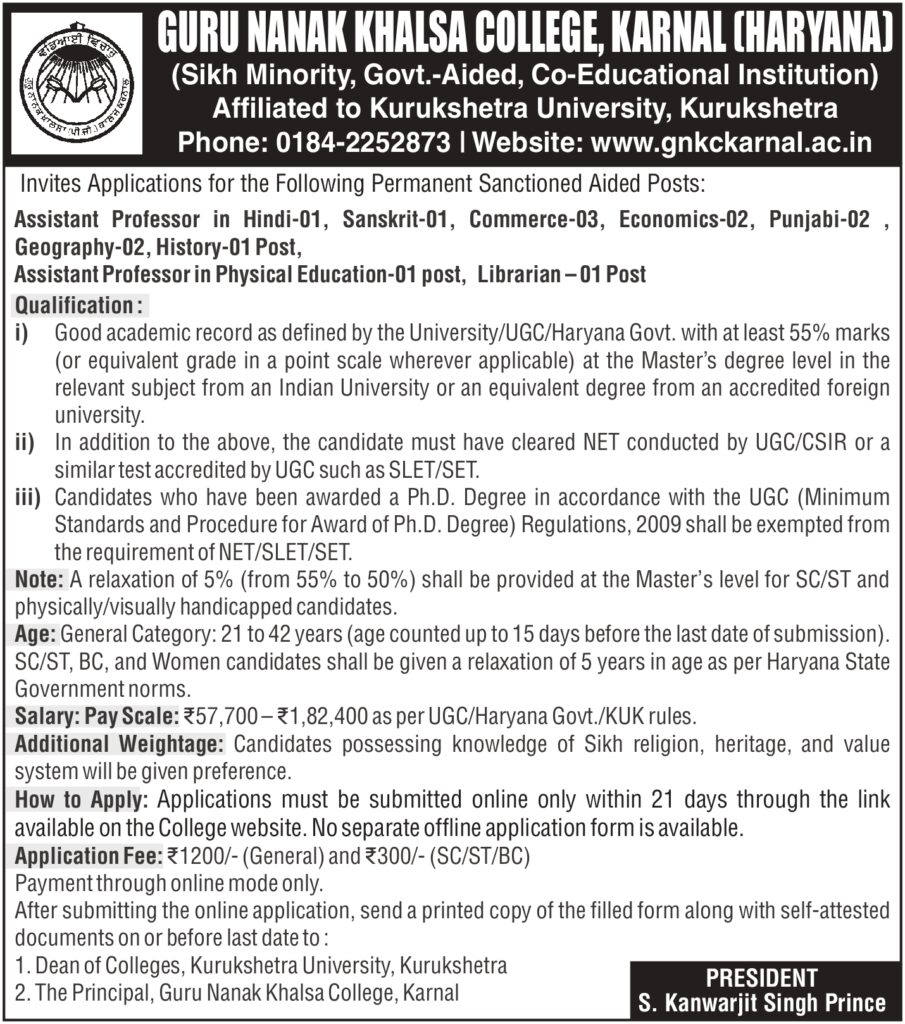 - The Dean of Colleges, Kurukshetra University, Kurukshetra